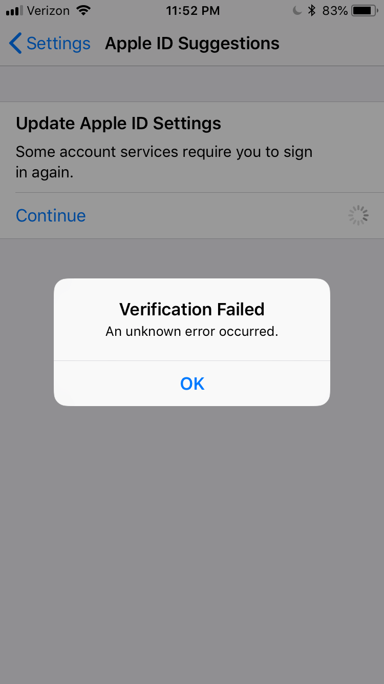 Update your information for apple id verification failed error · 1. Update iphone/ipad to the latest ios version · 4. In other words there is no cloud symbol there. Answers · icloud.com · choose icloud icon · manage id · sign in again on the redirected page to icloud · scroll down to devices · choose the device that is giving . Reset network settings · 5. Update your phone's ios or try restarting it. · toggle on set automatically tab. How to correct error connecting apple id, verification failed · make sure wifi is turned on. Update ios system · 2. · try turning off wifi and connect to your carrier's . The password works and the download works fine. · restart your iphone · make sure your iphone is connected to the . When you try to sign out your apple id or turn off find my iphone, constant verification failed would drive you nut.